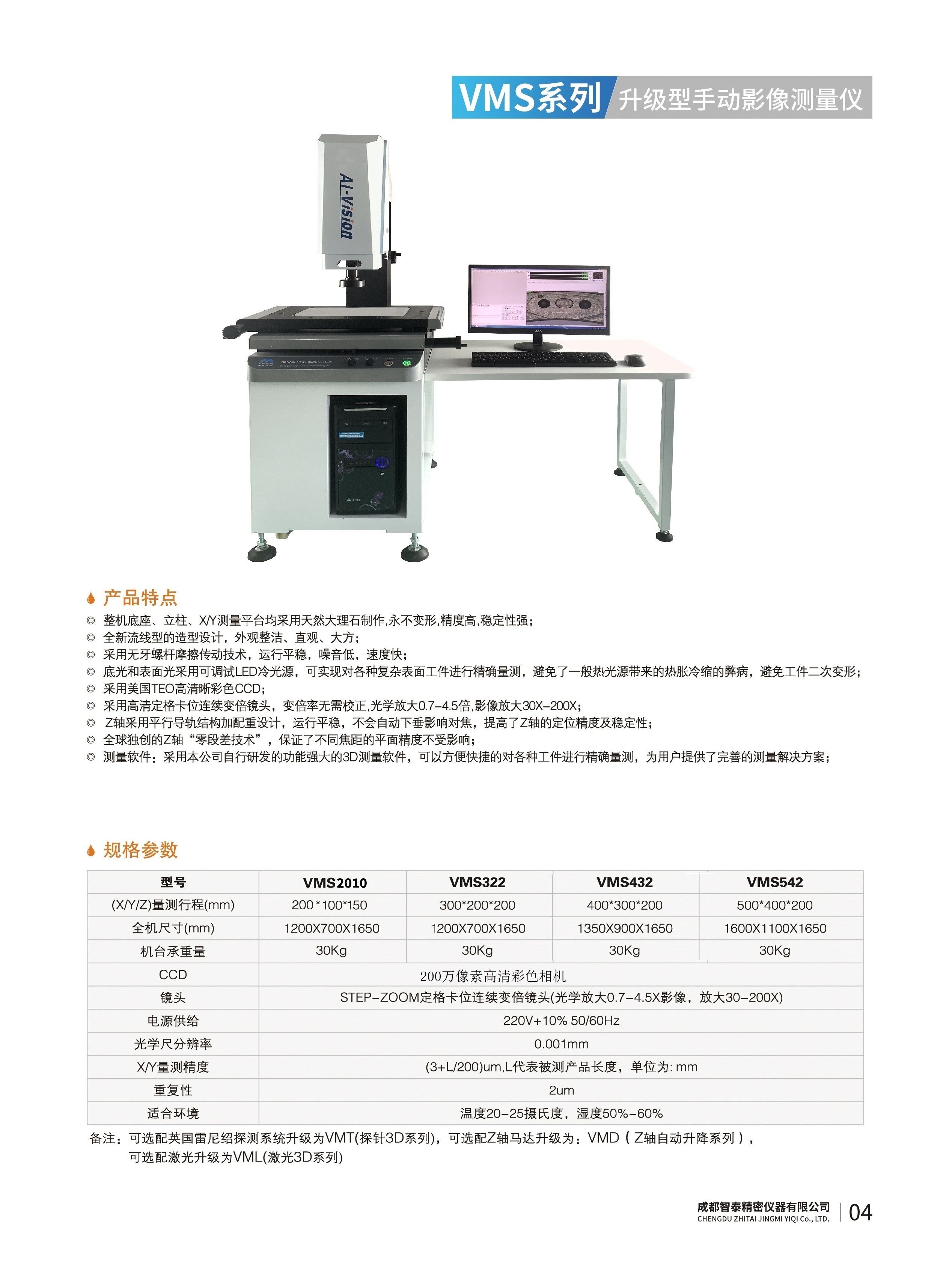 成都智泰精密儀器有限公司專注于精密測(cè)量?jī)x器,人工智能,智能制造領(lǐng)域,專業(yè)從事智能視覺自動(dòng)化檢測(cè)解決方案的貿(mào)易型企業(yè)。公司成立于2011年,位于天府之國(guó)成都,現(xiàn)有行業(yè)精英十余人,辦公倉儲(chǔ)面積200余平米。 公司主要產(chǎn)品為精密光學(xué)影像測(cè)量?jī)x,精密輪廓形狀測(cè)量?jī)x,精密機(jī)器人定位系統(tǒng),精密智能視覺尺寸檢測(cè)儀器,精密表面缺陷智能檢測(cè)設(shè)備,工業(yè)工程特種機(jī)器人。 公司憑借過硬的技術(shù)實(shí)力和產(chǎn)品方案,率先進(jìn)入智能視覺自動(dòng)化檢測(cè)領(lǐng)域,推廣以精密智能視覺自動(dòng)化檢測(cè)為基礎(chǔ)的機(jī)器人自動(dòng)化應(yīng)用,公司不斷整合上下游的資源,擁有巨大的全產(chǎn)業(yè)鏈優(yōu)勢(shì)??蛻羧后w覆蓋了我國(guó)精密制造業(yè)的多數(shù)領(lǐng)域,包括航空、航天、軍工、汽車、新能源、光伏、食品,精密電子、精密機(jī)械、模具、PCB、LCD、五金、塑膠、醫(yī)療、教育、計(jì)量及科研院所等行業(yè)。 公司創(chuàng)新的產(chǎn)品能滿足生產(chǎn)與制造行業(yè)客戶的要求,訓(xùn)練有素的工程師能及時(shí)提供多種技術(shù)服務(wù),如解...